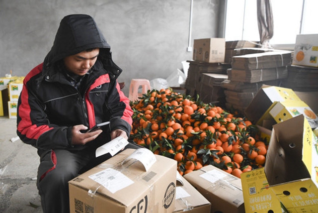 ↑2019年12月28日,快递公司工作人员在重庆市奉节县安坪镇一处电商服务点处理快递订单。新华社记者王全超摄