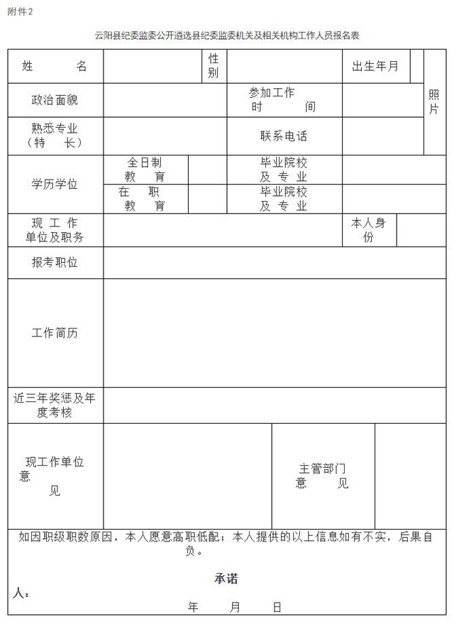 1. 《云阳县纪委监委公开遴选县纪委监委机关及相关机构工作人员报名表》(附件2);