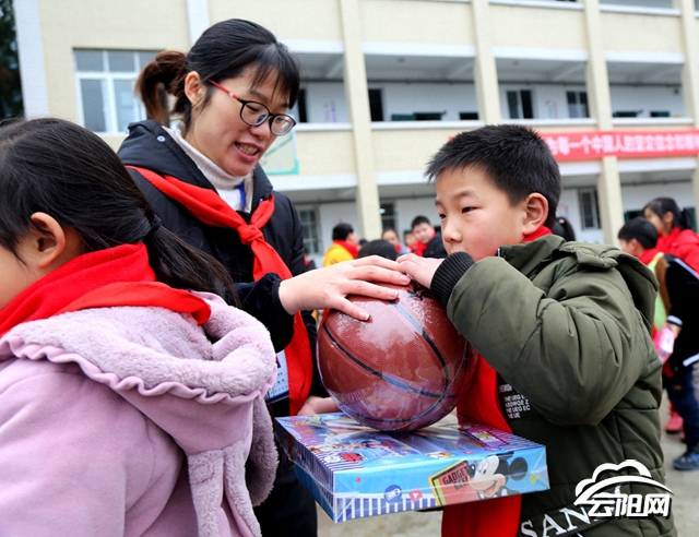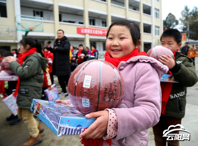 在上坪小学,工作人员为89名孩子带去了新购的学习用具、篮球等礼物,并将礼物送到孩子们手中,为寒冷的冬日注入了温暖的阳光。随后,工作人员们还和孩子们玩起了游戏,描绘出一幅温馨的画面。