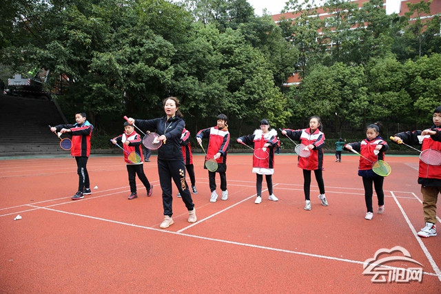 “大家跟我学,握拍、挥拍、击球……”近日,记者在重庆中山外国语学校见到谢艳林时,她正在对小学部六年级三班的学生进行羽毛球基本动作教学。