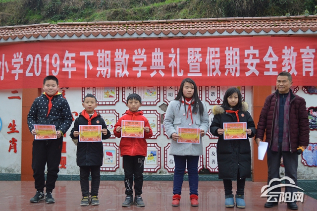 在散学典礼上教导处对老师和同学们所取得的成绩给予充分的肯定,并表扬了35名成绩优异的同学;安稳办针对假期交通、消防、食品等安全进行了教育,对同学们的社会实践活动提出了很好的建议,希望全校师生高高兴兴回家,来年平平安安返校。