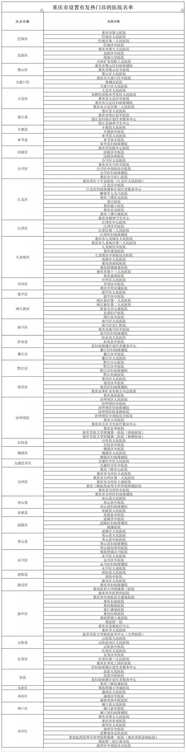 现将我市设置发热门诊的医院名单予以公布。各区县卫生健康行政部门可根据疫情防控需要予以调整,并在官网上公布。