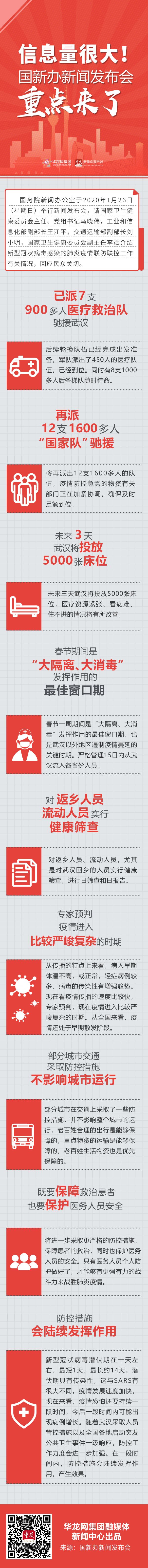 国务院新闻办公室于2020年1月26日(星期日)举行新闻发布会,请国家卫生健康委员会主任、党组书记马晓伟,工业和信息化部副部长王江平,交通运输部副部长刘小明,国家卫生健康委员会副主任李斌介绍新型冠状病毒感染的肺炎疫情联防联控工作有关情况,回应民众关切。