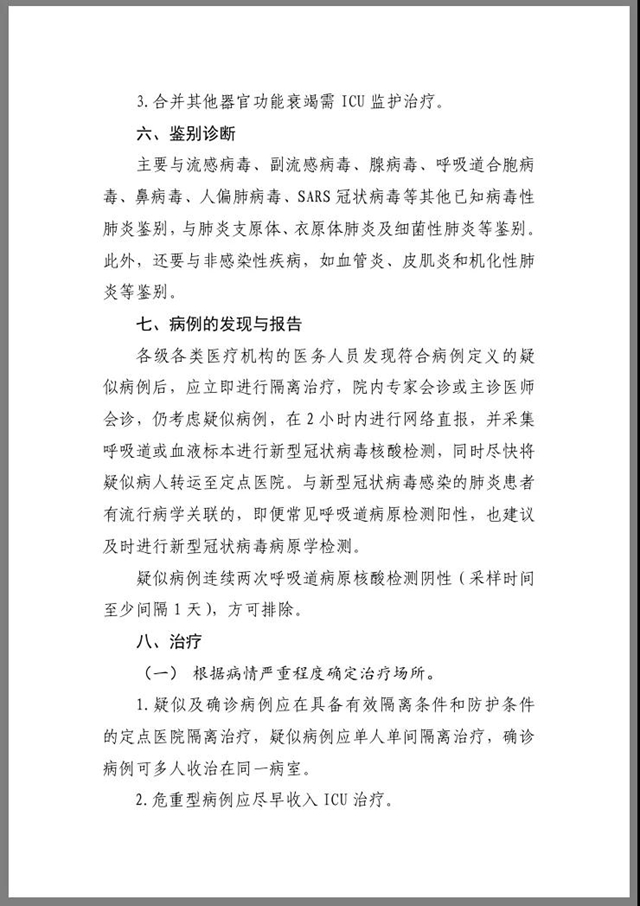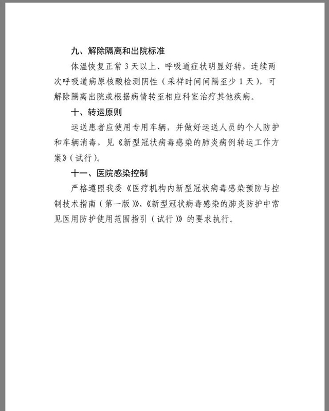 关于印发新型冠状病毒感染的肺炎诊疗方案(试行第四版)的通知