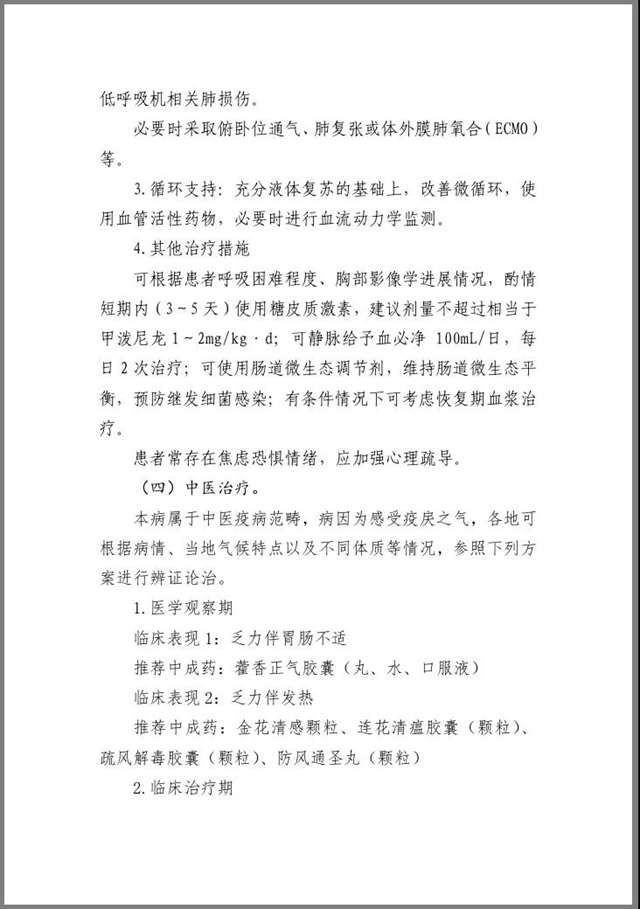 《新型冠状病毒感染的肺炎诊疗方案(试行第四版)》