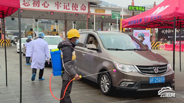 2月2日,在沪蓉高速云阳收费站,公安、运管、交通和卫生健康等相关部门,在收费站设立疫情检测点,对下道车辆人员进行体温检测及登记,并主动宣传我县出台的相关管控措施。