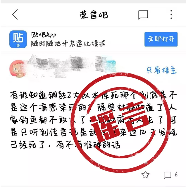 谣言:荣昌鼓楼某水库死者系“新冠肺炎”去世