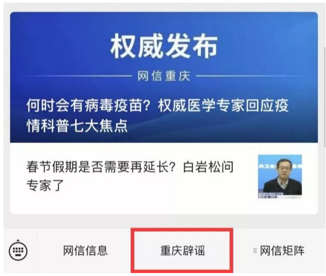 点击底部“重庆辟谣”菜单