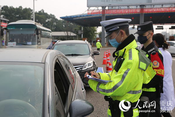 民警在对入渝车辆进行登记检查。重庆市公安局供图