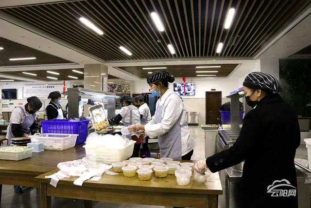 云阳网讯(记者 赵晓龙 刘浮生)“县委办14份、物业公司7份……”2月4日,记者走进县机关职工食堂看到,工作人员全副武装正在采用流水线作业,为防控一线值班人员准备午餐,保障用餐安全。