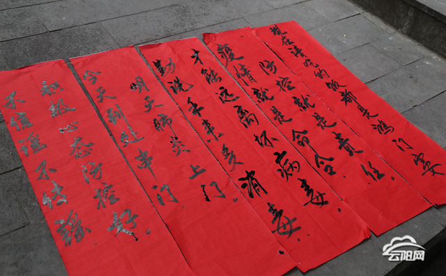 这几日,朱清河每天一大早就在自家门口“支摊设点”,一边念着新型冠状病毒感染的肺炎疫情防控知识,一边用毛笔在红纸上书写下宣传标语。一张张红色的标语不仅用通俗易懂的方式提示居民要保护好个人人身安全,助力驰援社区疫情防控工作,同时也把社区党员干部对人民群众的关切之心、抗击疫情的决心写在了里面。