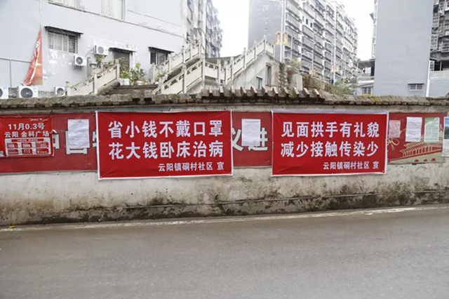 此外,在疫情发生之时,云阳镇采取各种进行疫情防控宣传,制作宣传标语及横幅256幅,出动宣传车13辆,以及山头喇叭播放《致广大企业业主和老百姓的一封信》等,实现了全镇宣传动员全覆盖,形成人人知晓、人人支持、人人参与 、人人监督的良好结果,确保守住零确诊、零疑似的目标 。