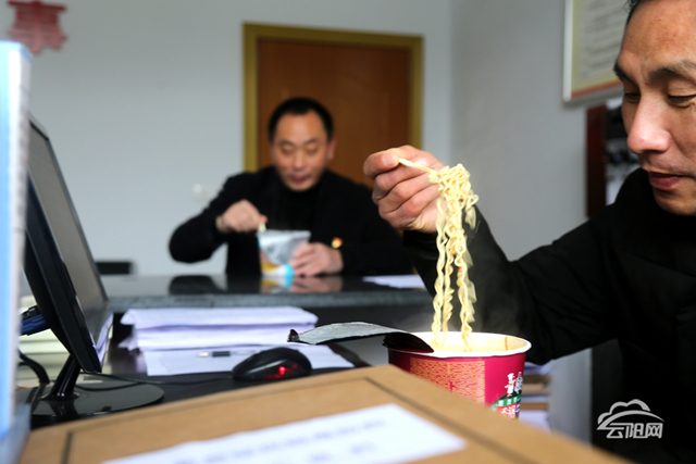 • 从疫情防控工作开始,张玉安几乎每天是最早来最晚走,困了就在办公室打会盹,饿了就吃一桶泡面。