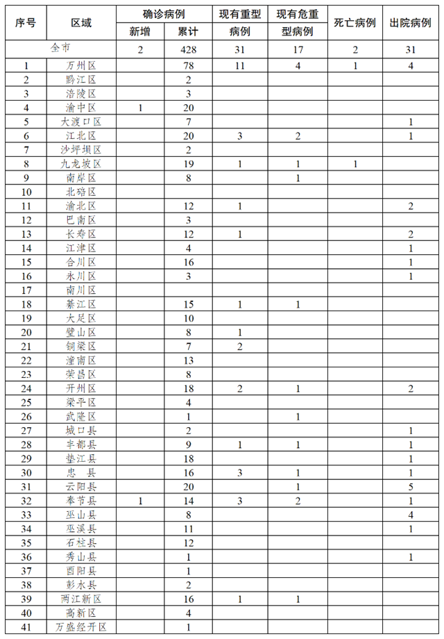 新增确诊病例中,渝中区1例、奉节县1例。