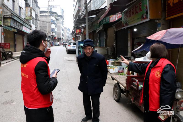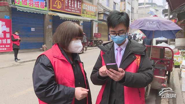 农贸市场,人群聚集,也是蔡海波和同伴们每天上午的主战场,他们在人群中,提醒大家戴好口罩,快买快卖,尽早回家。