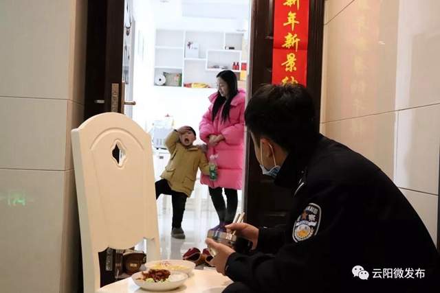 这几天,一张在一线从事疫情防控工作的民警因为担心自己接触太多的疑似患者感染病毒,只能在家门前就餐的照片在不少云阳市民的朋友圈疯传。这张照片的主人公叫谭元华,是云阳县公安局治安管理大队的一名普通民警,从春节前开始,已经在一线执勤的岗位上连续工作1个多月了。