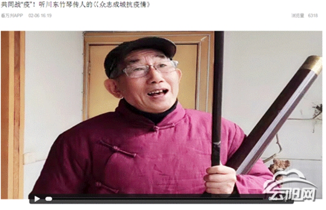 “病毒正横行,老人莫出门。如果到处窜,害己又害人。”疫情发生后,熊同福就想着为战“疫”贡献力量。他文艺爱好广泛,不仅创作了快板词,还创作了竹琴演奏作品《众志成城战疫情》,并用竹琴艺术弹唱,录制视频,鼓舞全县人民上下一心,众志成城战胜疫情。