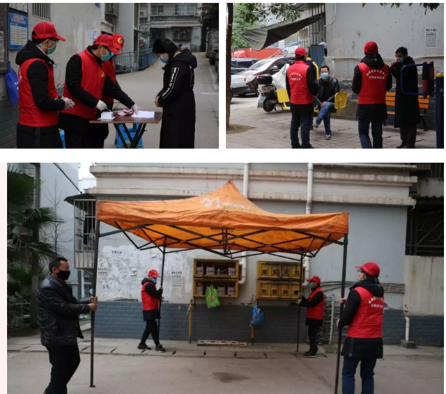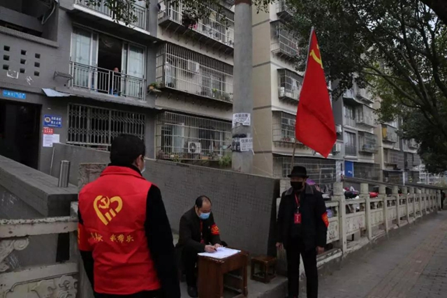 一瞬间,一个个红色的身影如卫兵般驻守在全县各大小区、楼栋、居民庭院。一张桌子,一把椅子,一份宣传登记资料,在党旗的衬映下,共同组成了一个个微型防控据点。盘问过往车辆、登记出入行人,量体温、做宣传、搞巡逻,党员志愿者们充分发挥先锋模范作用,带领社区志愿者严格把关、敢于逗硬,用党性筑牢一道又一道坚实的楼院防线,确保了居家防护(隔离)更有力、更有效。