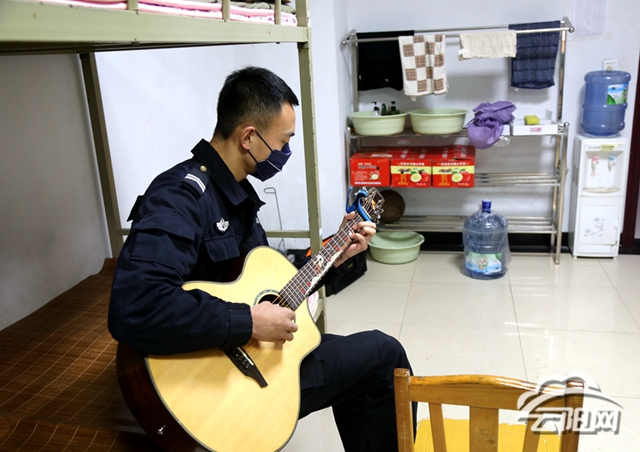 今年24岁的胡创在2015年退伍回到云阳加入县特警大队。在疫情防控时期,他和他队员们冲在防控第一线,开展巡逻劝导、紧急救援等任务,保卫人民群众生命安全。业余时间,胡创喜欢拿起吉他,弹上一曲,为队友们舒缓疲惫的身体,谈笑声和吉他优美音乐不时阵阵传出。