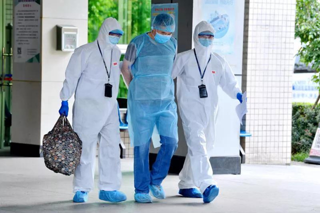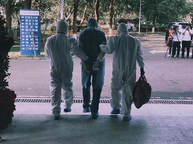 ▲2月15日下午,海南省东方市新冠肺炎确诊患者张某智在海南省传染病医院治愈出院,因涉嫌以危险方法危害公共安全罪被东方市公安局依法采取强制措施。(海南省传染病医院供图)