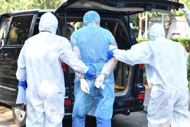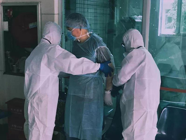 ▲2月15日下午,海南省东方市新冠肺炎确诊患者张某智在海南省传染病医院治愈出院,因涉嫌以危险方法危害公共安全罪被东方市公安局依法采取强制措施。(警方供图)