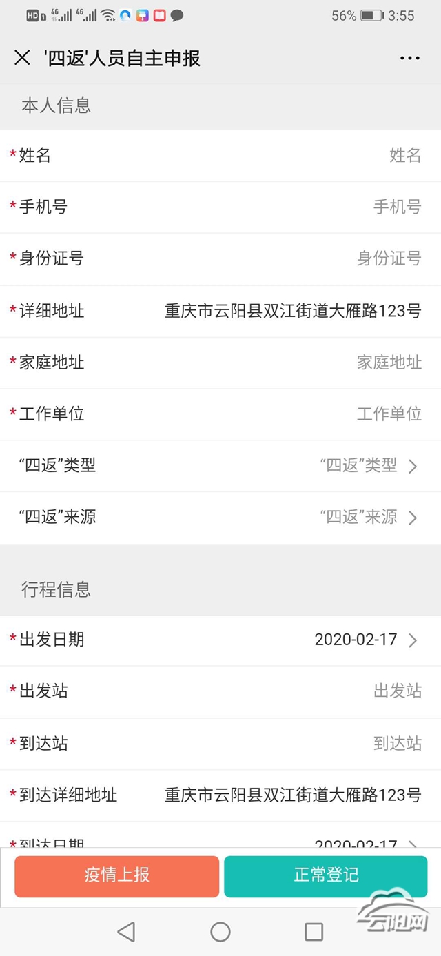 公众号汇集了全县村(社区)疫情管控的核心功能,一张二维码形式的电子通行证,涵盖了人员健康打卡、体温登记等健康数据监测、人员通行数据记录、异常数据预警等功能。据移动公司开发人员介绍,公众号上为居民用户端、管理员用户端。在居民用户端,居民只需要通过手机微信扫描“云阳抗疫”的二维码,在线填入自己的姓名、手机号、身份证号、具体住址、健康状态等信息,下次再进出小区只需扫码填入实时测量的体温即可;管理员用户端后台能够生成包括业主姓名、联系电话、出入时间等内容的小区人员出入的明细表和包括小区名称、当天出入人数等信息的区域内各社区的总表,使社区(村)管理人员全面掌握进出人员的基本信息和进出社区情况。