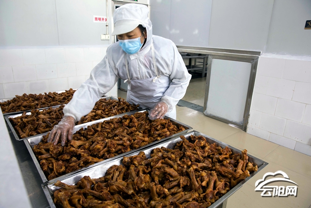 2月17日,云阳宏霖食品股份有限公司工人在厂房内翻晒辣椒酱、包装佐料、熟食产品等,产品销往广州、上海、重庆等地。