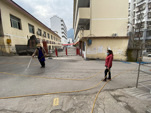 全面消毒有奇招,工具来自百姓家。长洪社区聘请12人,租用2台小车负责整个社区全面消毒工作,预计完成三轮地毯式消毒,目前已完成1轮,正在进行第2轮。为高效完成消毒作业,社区工作人员向本社区农业种植户借用农药喷撒用具,双管齐下。首先采用本地农用长管式雾化喷枪,其由四根长约200米的细管组成,2人协作可从社区主干道延伸至各个小道实施道路网面式播撒消毒水;其次针对无法触及的死角,采用小型背式混合喷雾壶进行查漏补缺。