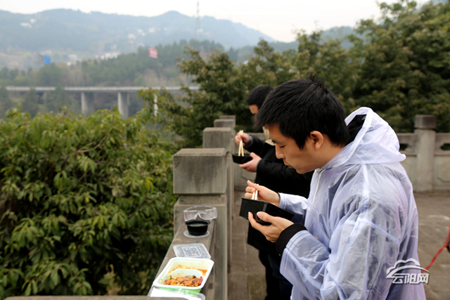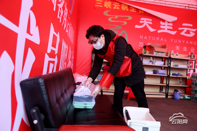 云阳网讯(记者 郑红均 鲜名扬)2月20日中午,一辆装满盒饭的送餐车驶进云阳高速路口检查站,一份份由爱心企业烹制的盒饭放在检查站无接触送餐点。