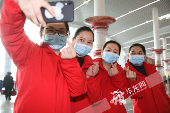 华龙网-新重庆客户端2月21日19时30分讯(记者 唐雨)疫情来袭,冲锋在先。今(21)日下午的江北机场T3航站楼,有一群年轻的“90后”身影,她们将作为重庆第十四批支援湖北医疗队的一员出征湖北武汉。按照中央统一部署,根据国家卫生健康委安排,重庆市委市政府决定增补第十四批支援湖北医疗队前往武汉。