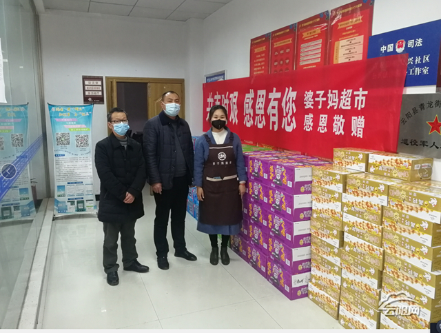 云阳网讯(通讯员 谭福康)疫情无情,人有情。2月22日下午,青龙街道复兴场镇婆子妈超市派员来到复兴社区居委会,为社区坚守在疫情防控一线工作人员送去50件矿泉水、50件方便面、50件牛奶等总价值8000多元的慰问品,助力该社区疫情防控工作。