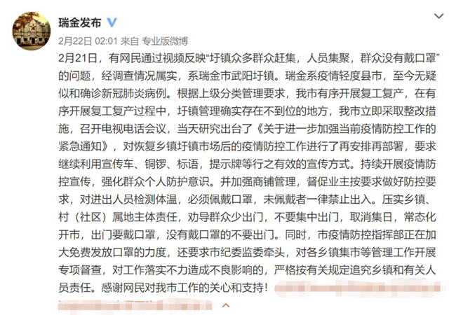视频中标示着2月21日,集市上人头攒动、蔚为壮观,这里面但凡有一个感染者,后果简直不堪设想。对此,当地政府连夜回应,宣布将立即采取整改措施。