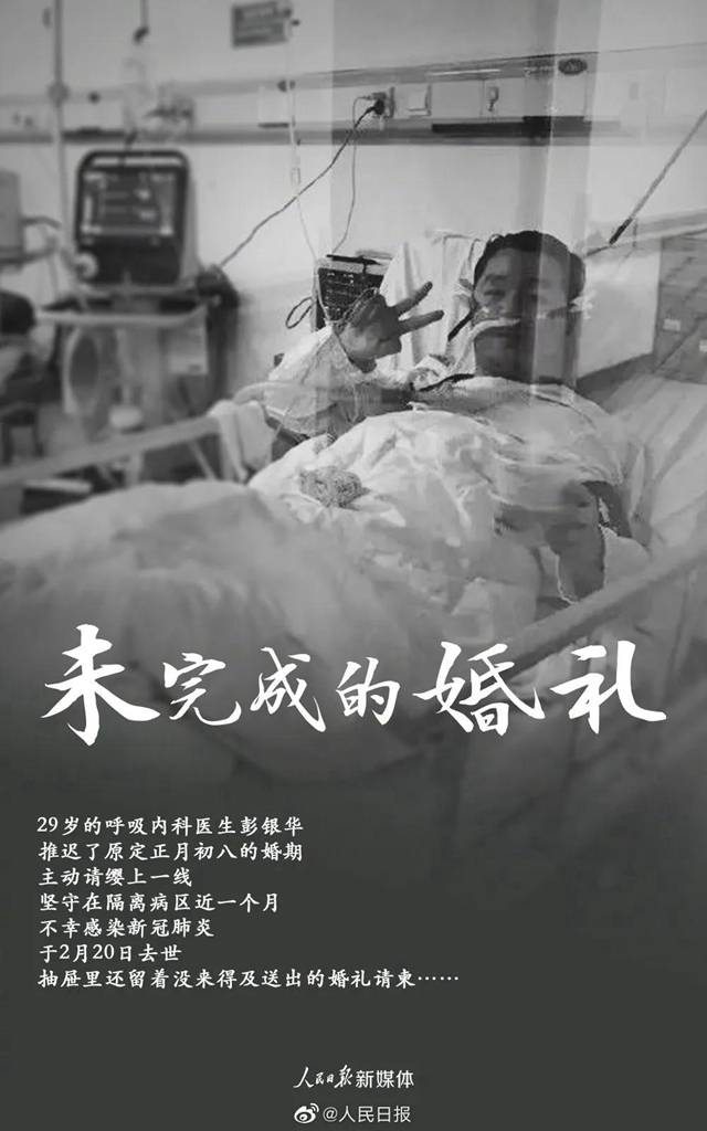 2月20日,武汉江夏区人民医院30岁的彭银华医生鏖战新冠肺炎不幸殉职。