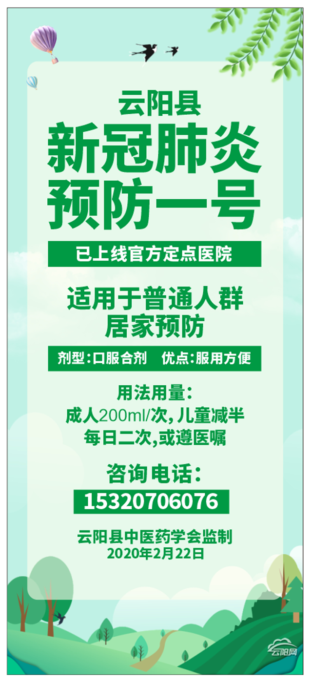 通知:云阳县推广“新冠肺炎预防一号”中医药处方