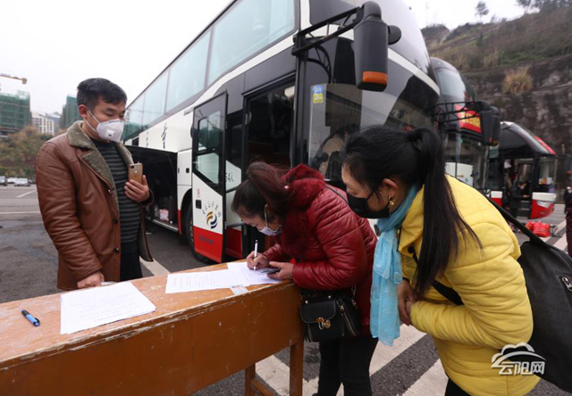 当天上午9点,记者在县汽车客运中心看到,上百名赶赴各地的务工人员正通过监测体温、实名登记等程序后,有序上车等候。站长陈永忠介绍:“今天发的包车开往深圳、珠海、常州等地,每车按载客量的50%载客,共发车11台次。”