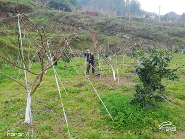 在后叶镇平进村鲜果园,几名戴着口罩的村民正在丽通农场里为李树、桃花等施花前肥、铺覆草膜。周通是村里的鲜果种植大户,去年依靠李子种植增收了近20万元。近期,他在政府工作人员的指导下组织工人在做好防护措施后开展春管,争取再获丰收。
