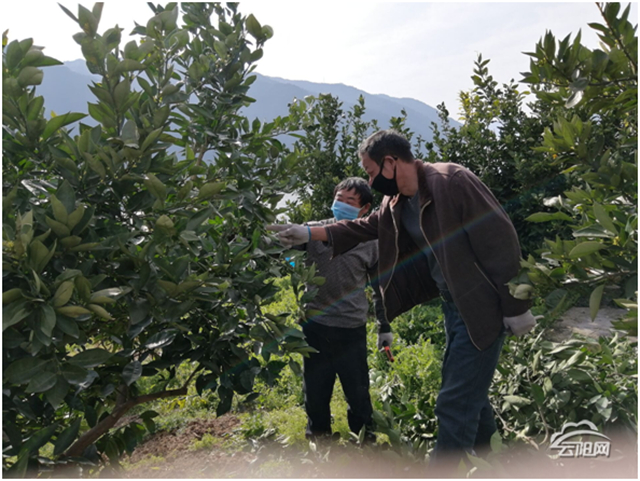这片柑橘园是屈万富、邵光聪等人承包的,他们从湖北秭归来到云阳创业,希望通过自己的技术带领云阳群众增收。不料新冠肺炎疫情暴发,受疫情影响,管护柑橘的湖北籍技术员一时无法回到云阳镇,这可急坏了屈万富、邵光聪等人。