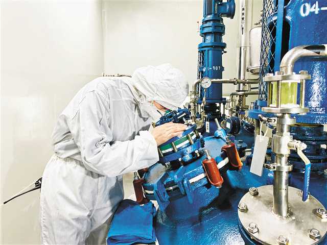 • 2月24日,位于重庆长寿区的康乐制药有限公司,工作人员正在生产线工作。该公司在做好疫情防控的前提下,于2月4日逐步复工,加紧生产防疫药品磷酸氯喹。记者 齐岚森 摄
