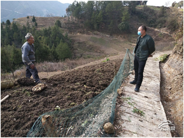 在抓好疫情防控的同时,他们还坚持脱贫攻坚产业发展不放松。该村今年计划发展200亩辣椒、400亩土豆。春耕在即,三名同志一边联系公司来村里指导辣椒育苗事宜,一边组织村民有序复工。目前已完成17个大棚翻地和掏箱,即将育苗。同时积极协调土豆种子“马尔科”2.5万余斤,已全部发放给农户陆续开始栽种。