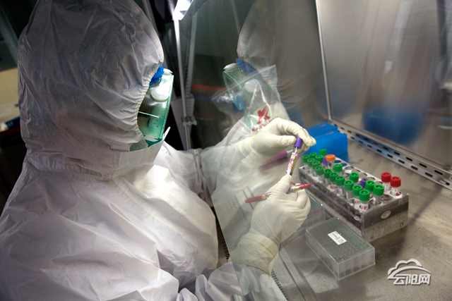 首例确诊病例出现后,县疾控中心扩大了筛查范围,只要有点疑似症状的,经医院采样后就送来检测。样本检测,最初只有汤俊和于小发两人做,做一次需花四五个小时,前三天,两人白天晚上都做,最迟要做到凌晨六七点钟,只有在样本送来的间隙才能休息一会儿。那几天,他们方便面都吃腻了。后来考虑到高强度工作恐生意外,他们就对科室另外4人进行了培训,然后6个人变成三班倒,至此才感觉轻松些。