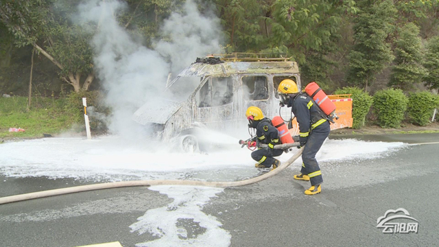 由于事发地距离云阳县城不到十公里,云阳消防救援大队消防员在事发后大约20分钟后就赶到了现场,用时不到十分钟就将火势完全控制。但因火势较猛,车身绝大部分已被烧毁。
