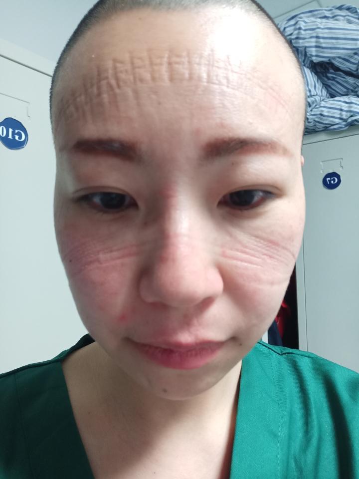 被护目镜压出的痕迹。受访者供图 华龙网-新重庆客户端发