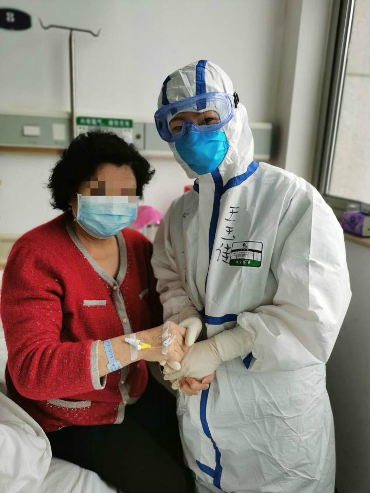 因为患者较多,病房从之前的单人间,扩充至现在的三人间。重症的病人年龄大部分集中在50岁到70岁之间,每个人病情的严重程度也不一样,最严重的已经需要插管接呼吸机辅助呼吸。王玉佳到病房第一天,在帮忙换药的时候,一位老太太细细地看了她几眼,操着一口并不标准的普通话喘着气说:“小姑娘,武汉其实很热闹的,这场病完了,你要再来看看呀。”老太太念叨着出院后要去吃碗热干面,说家里的小孙女马上就要参加高考了,不知道会不会受影响。