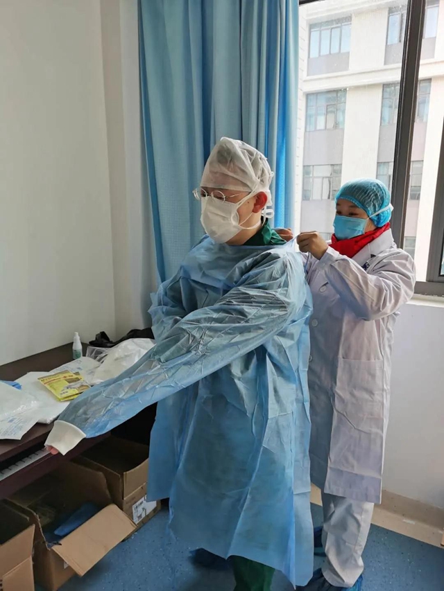 为期两天的培训和考核后,2月29日,队员立刻赶赴隔离病区工作。王琳月也深入医院临床的一线,她和前一批支援队员进行了工作交接,熟悉病区的上下班路线流程、管理规定,了解房间内的区域划分,切实做好这次援鄂医务人员的感控安全,确保医护人员零感染。