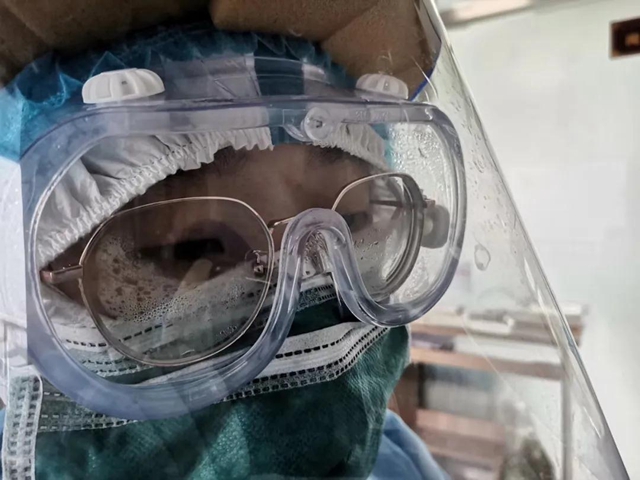 作为临床医生,钱奎每天负责查房、诊疗、处置突发、安抚病人情绪等工作,穿着密不透风的防护服,在病房一干就是4个多小时。