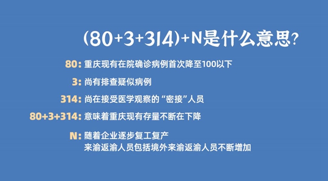 专家认为,我市连续8日无新增确诊病例,现有在院确诊病例降至80例,现有在院确诊病例为零的区县增至14个,疫情防控形势积极向好的态势正持续拓展。但是,零增长并不等于零风险。随着企业逐步复工复产,来渝返渝人员包括境外来渝返渝人员不断增加,疫情反弹的风险仍不容忽视,仍需因地制宜,认真落实好分区分级分类防控要求。