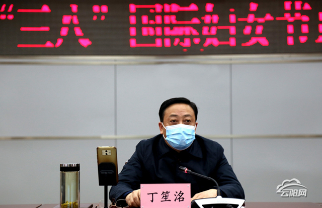 县委副书记丁笙洺代表县委向全县广大妇女同胞,特别是抗疫一线的妇女同胞致以节日的祝福。他说,新冠肺炎疫情以来,全县各级妇联组织、女性社会组织主动投身群防群治、联防联控和捐款捐物中;奋战在抗疫一线女性工作者,尤其是女医务工作者特别能吃苦、特别能战斗;全县各行各业女性都立足本职岗位,有序投入复工复产;广大巾帼志愿者和妇女群众积极参与村(社区)宣传引导、摸底排查、守楼护院、心理疏导等关爱服务,守住了家庭防线,为打赢疫情防控的人民战争、总体战、阻击战贡献了半边天力量。