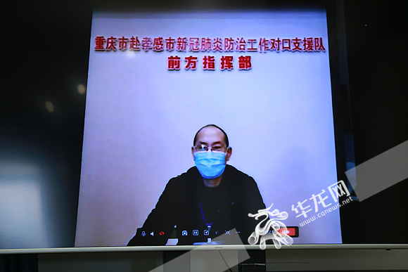 • 陈恳视频连线介绍重庆市支援孝感医疗队前线工作情况。华龙网-新重庆客户端记者 李裕锟 摄