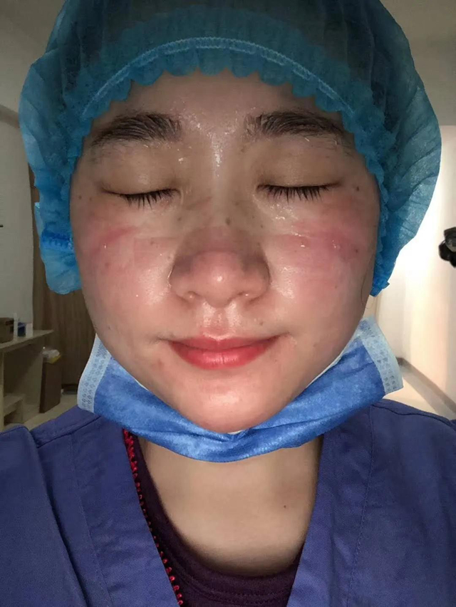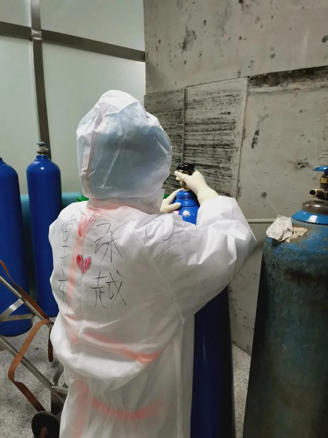 3月2日,对韩辉容来说是特别难忘的一天。她从中午12点进入病房,下午4点出病房,短短4个小时,因为穿着两层隔离衣和一层不透气的防护服,加上对工作不熟悉,大大增加了她的工作难度,来来回回跑了几个楼层,包裹在严严实实的防护服下,跑起来都特别费劲,护目镜起雾到已看不见前面的路,中间几次因为喘不过气来而暂停手中工作,汗水早已浸湿了她的衣服,心率上升到只能听见自己砰砰砰的心跳声和喘气声……即使这样,她也咬紧牙关,一步一步地完成了所有的工作。
