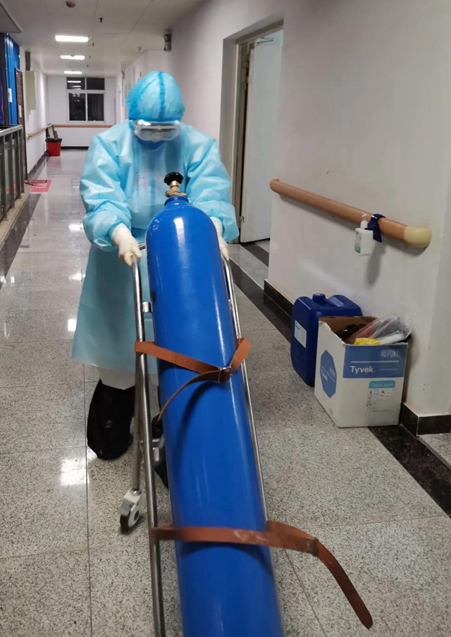 韩辉容拖着氧气瓶